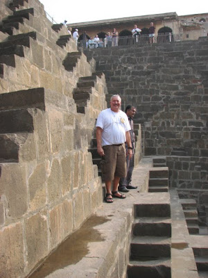 We drove into a small hamlet and Vikrum stops beside this building. We are thinking that is a big building to house a well. This is simply the entrance to the well compound. Once inside we pay a minimal fee and an older Indian gentleman motions us forward down a narrow passageway which opens to this...